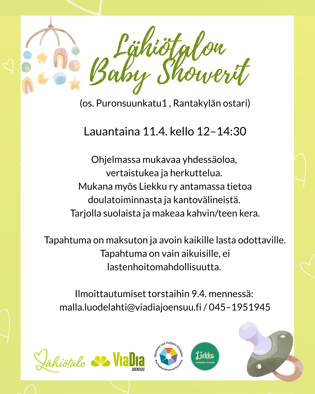 Tapahtumat, retket, leirit (Kaikki Lähiötalon tapahtumat eivät näy täällä, vaan osaa markkinoidaan suoraan ainoastaan kohtaamispaikassa kävijöille) Aiempia tapahtumia: Ma 7.6. klo 17-19 Odottavien ilta Lähiötalolla yhdessä Liekku ry:n doulien kanssa odottavien-ilta-mainos