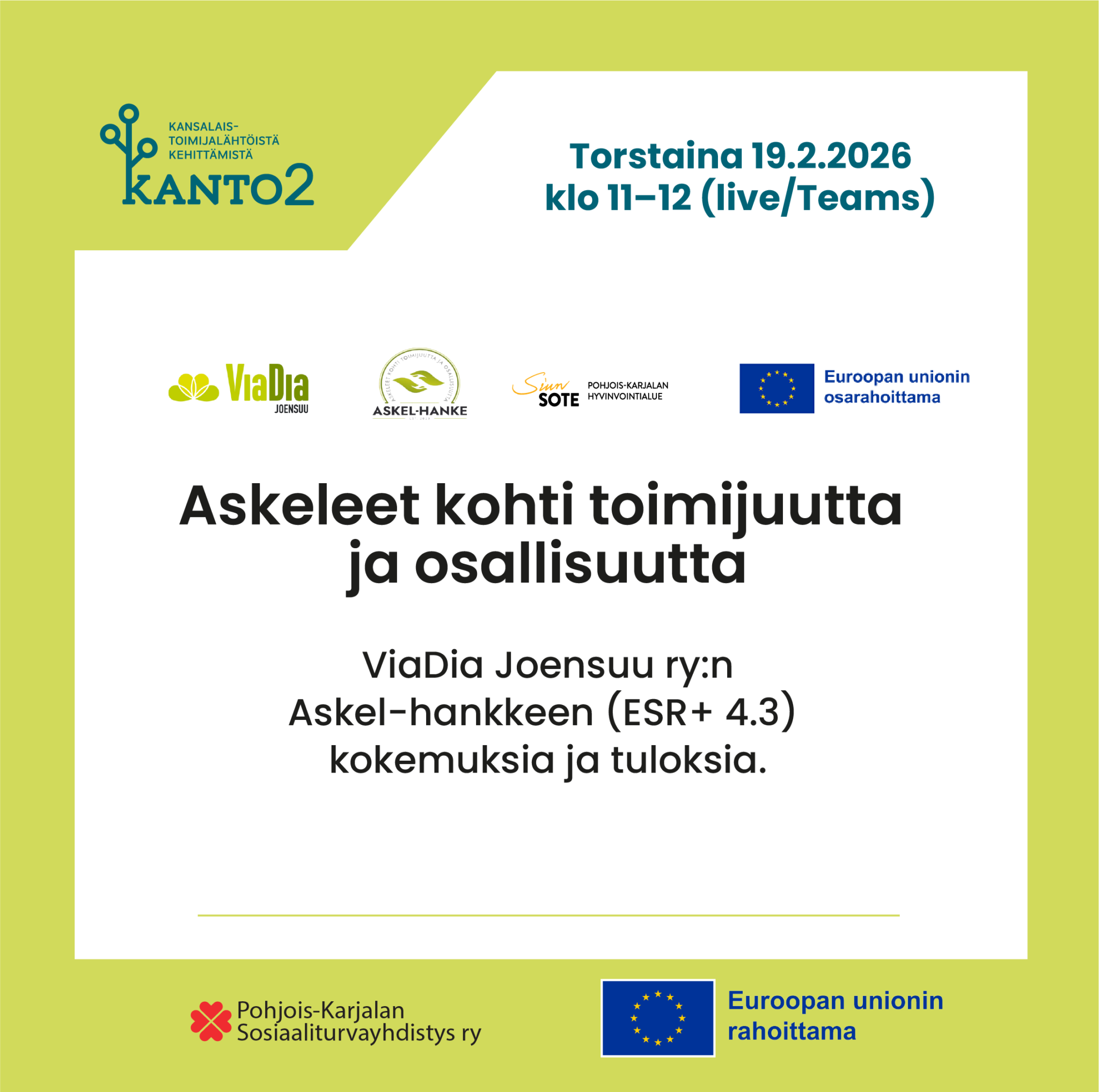 Tule kuuntelemaan Askel-hankkeen kokemuksia ja tuloksia torstaina 19.2.2026 klo 11-12.