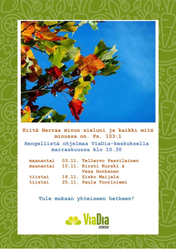 Hengellistä ohjelmaa marraskuussa Heidi Parkkinen31.10.202531.10.2025 Uncategorized ← Muutoksia ruokajakeluun 1.11.2025 alkaen