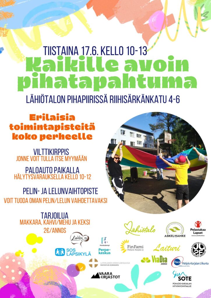Tervetuloa Lähiötalon perinteiseen pihatapahtumaan! Tapahtuman jälkeen Lähiötalo jää kesätauolle ja toiminta jatkuu taas 5.8..